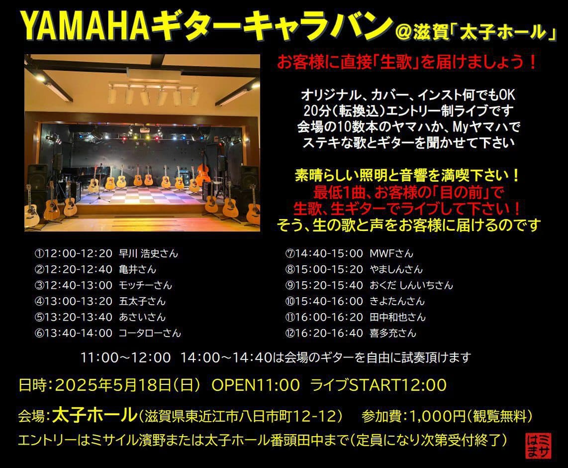 ▶︎[LIVE] 5/18(日)喜多充、滋賀県東近江市「太子ホール」にて開催された「YAMAHAギターキャラバン」に出演、無事終了しました。