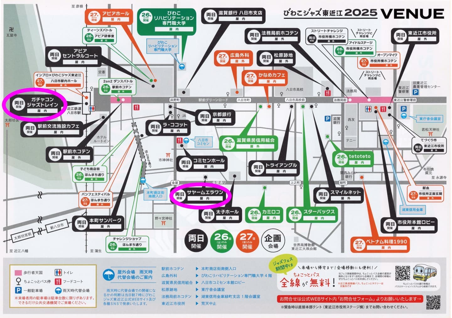 なお、近江鉄道以外は入場無料となりますが、フェスの運営資金の募金(返礼品もあります!)、また演奏者への投げ銭など、強制ではありませんが、この催しが東近江で長く続きますよう、ご支援ご協力のほど、何卒よろしくお願いいたします。