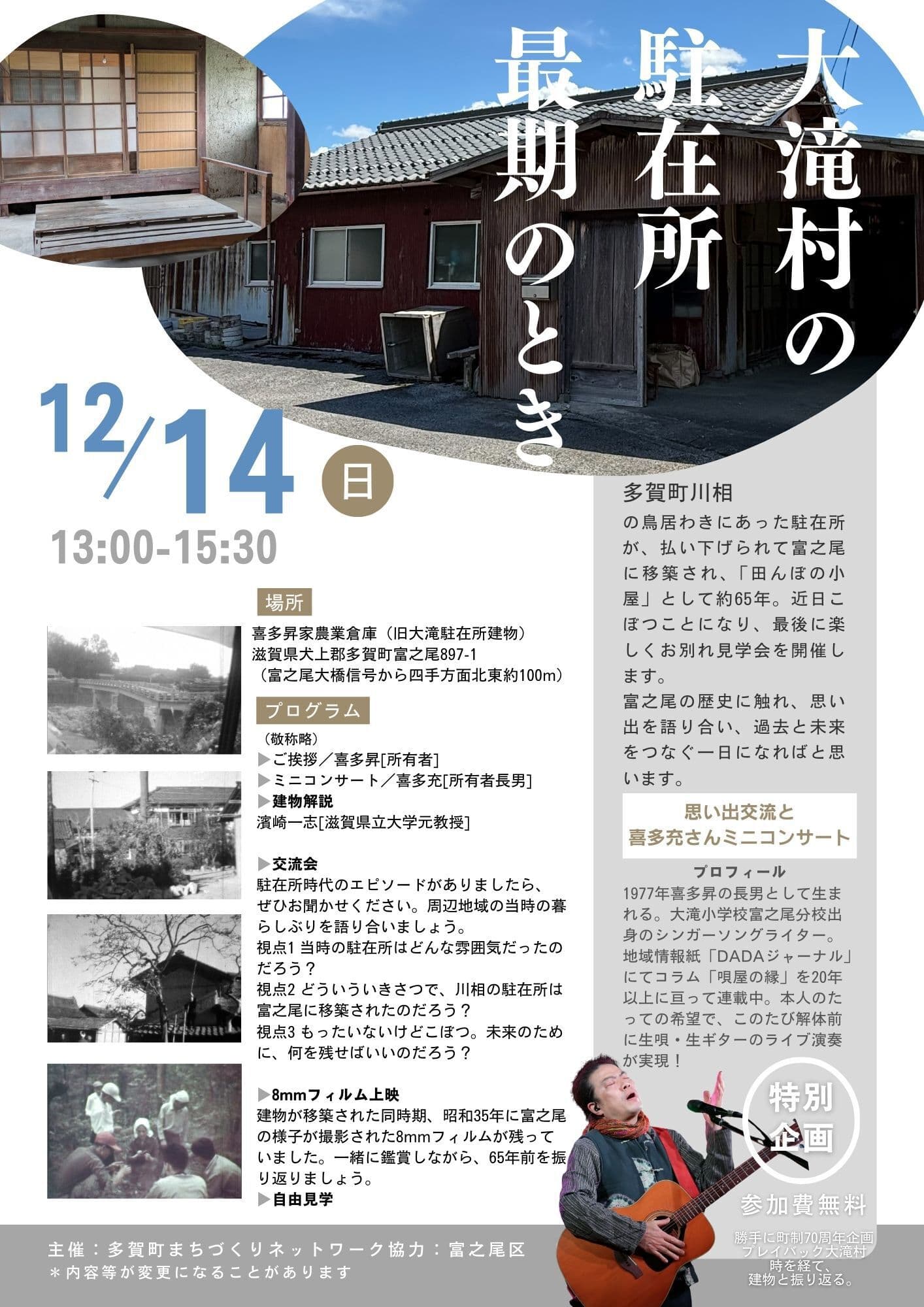 ▶︎NEW!![LIVE] 12/14(日)喜多充、滋賀県多賀町富之尾「大滝村の駐在所 最期のとき」にて演奏決定!!